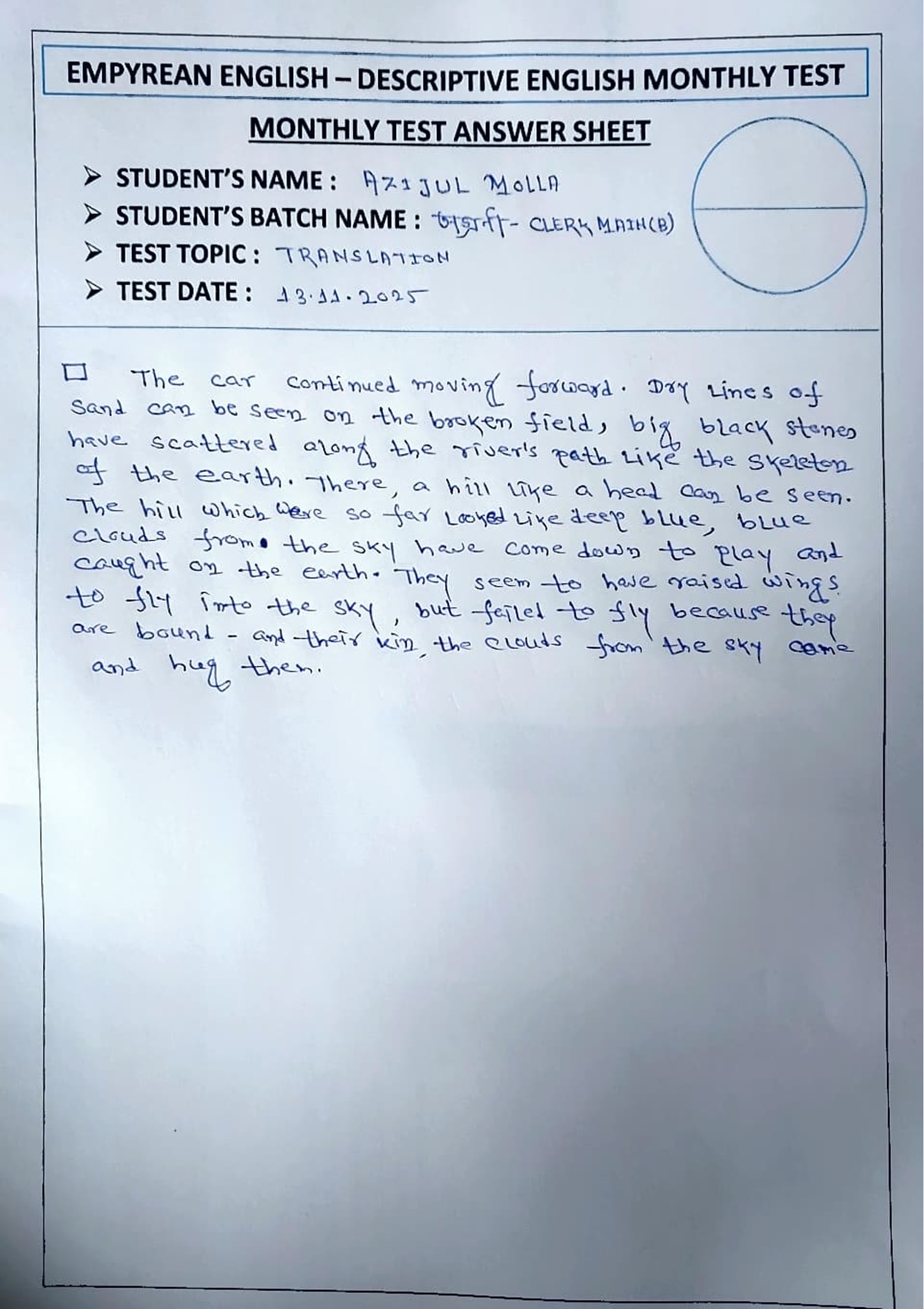 ২. শুধুমাত্র আমাদের দেওয়া Answers Sheet এ উত্তর লিখতে হবে। অন্য কোন Copy বা খাতায় লিখে জমা দিলে accept হবে না এবং পুরো উত্তরটি নিচে দেওয়া সিঙ্গেল পেজের মধ্যে লিখতে হবে। এই পেজটি আপনি নিচে দেওয়ার Download বোতামে ক্লিক করে Download করুন এবং প্রিন্ট আউট বের করে নিন।